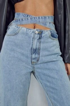 Wrap Detail Waistband Straight Leg Jean